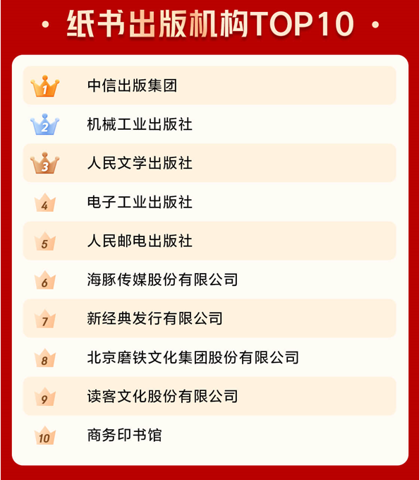 此外,通过纸书出版机构TOP10、电子书出版机构TOP10可以看出,品牌出版机构依靠过硬的产品以及品牌价值,持续获得读者认可,90%上榜的出版机构与2019年保持一致。