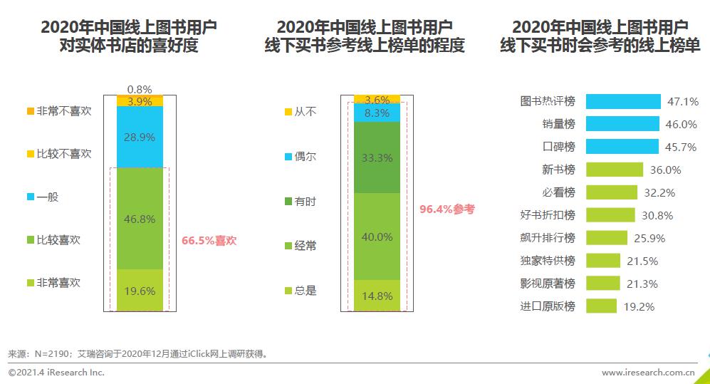 尽管越来越多的用户已经习惯于线上购书,但线下书店依然有其沉浸式阅读、体验感、作为休闲空间的附加值等优势存在。数据显示,有66.5%线上图书用户仍然有着去实体书店的意愿。同时,96.4%用户在线下买书时会参考线上榜单,超四成用户会参考图书热评榜、销量榜和口碑榜。某种意义上来讲,用户的购书行为也是线上与线下融合的一种体现。