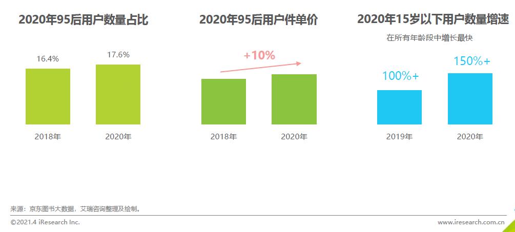其中,随着Y世代、Z世代的逐渐崛起,图书用户年轻化也越来越明显。《报告》显示,在2020年的购书用户中,95后用户数量占比和件单价,相较于2018年有明显增长。25岁以下的用户占比从2018的16.4%提升到了2020年的17.6%。2020年,95后用户的件单价同比2018年提升了10%。可见,作为冉冉升起的新星,95后已成长为图书消费的新势力。