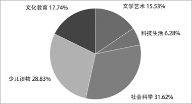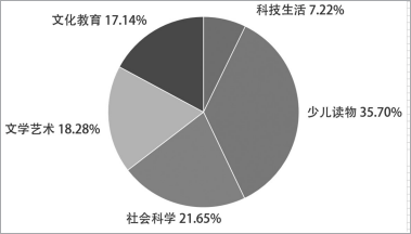4月份,线上市场销售结构为:少儿读物类份额居首,占比35.70%;社会科学类份额次之,占比21.65%;文学艺术类份额居中,占比18.28%;文化教育类份额第四,占比17.14%;科技生活类份额最小,占比7.22%(见图4)。相当一个时期以来,线上市场一直是少儿读物类份额最大,文化教育类份额次之;而4月份线上市场这一常态化细分市场位序被改变,同样也是社会科学书份额超常态地超越了文化教育书份额。