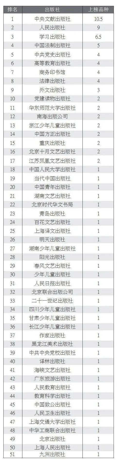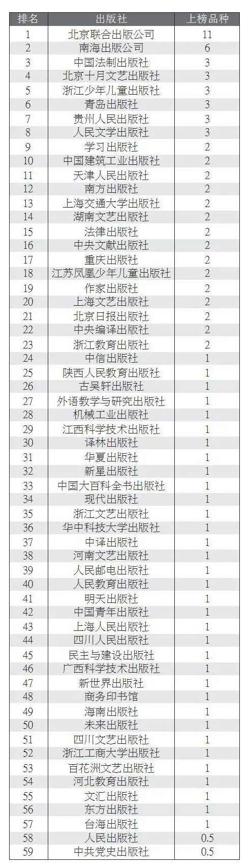 (两社合出一书,各按0.5种计,上榜品种相同的按销量降序排列)