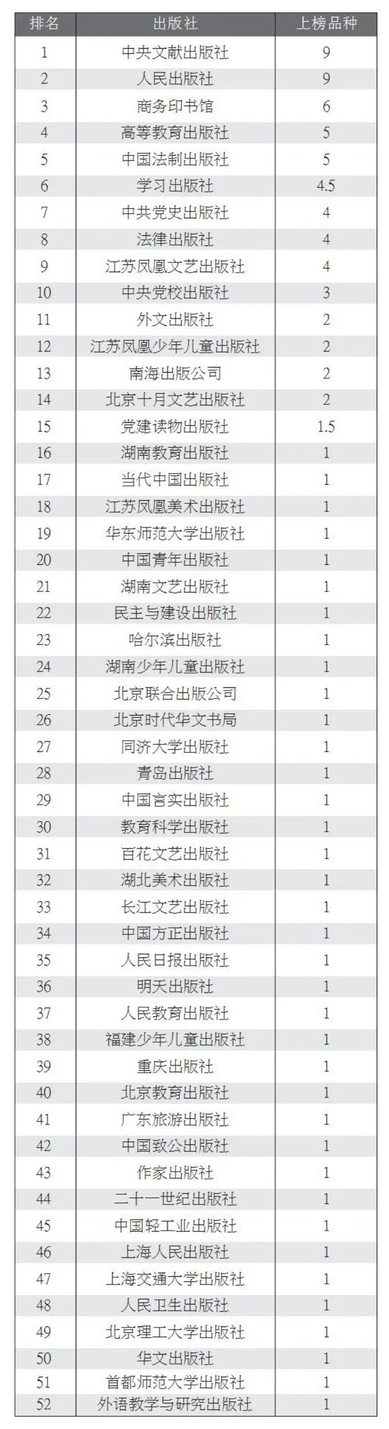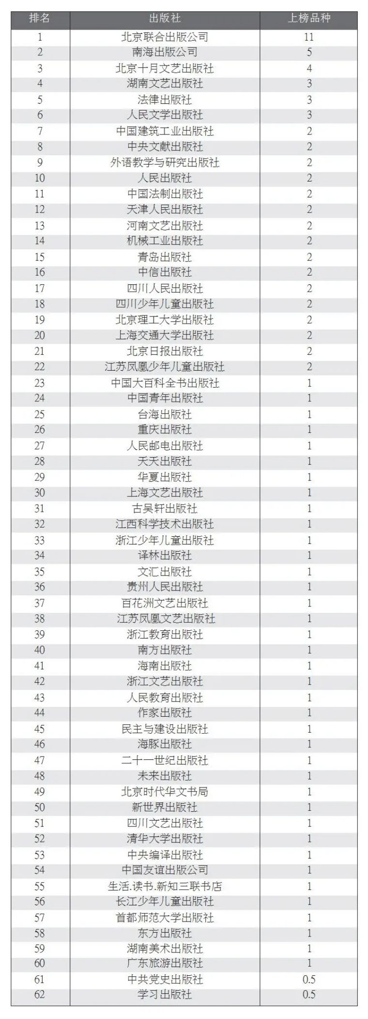 (两社合出一书,各按0.5种计,上榜品种相同的按销量降序排列)