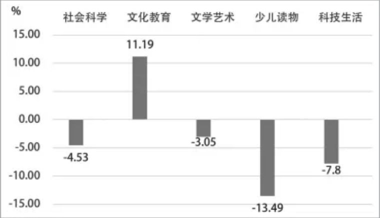 文教图书比重扩增,少儿读物比重下降