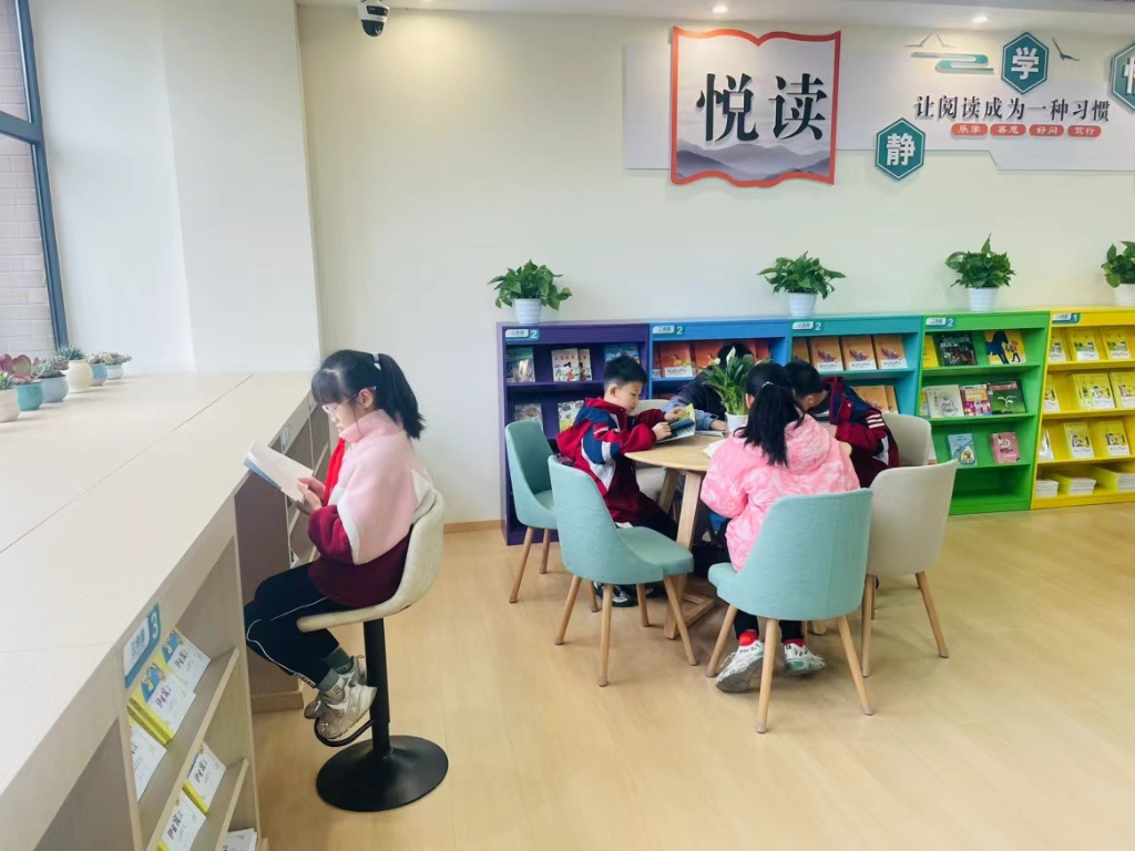 走进书屋,所有图书都是按年级、按不同的年龄层次进行分类、分级摆放。专门定制的书架高度可适应不同年龄段的学生,书架底板略微上倾,方便学生借阅。