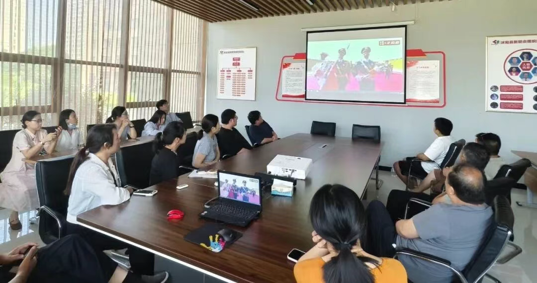 9月3日,沭阳文化创意产业园1号楼会议室洋溢着庄重而热烈的氛围,园区精心组织全体员工以及入驻企业代表,共同集中收看直播,旨在通过共同观看这一具有历史意义的盛典,激发爱国热情,铭记历史,缅怀先烈。
