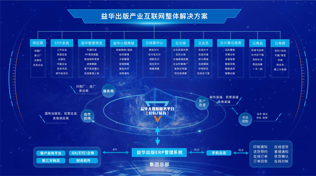 北京益华鼎泰科技发展有限公司于 2003 年成立,二十年来始终聚焦书业产业,致力于提供全面信息化解决方案。其业务触角延伸至编印、出版、发行、零售等诸多关键领域,构建起完整的服务覆盖面。针对客户的数字化、集团化需求,益华拥有强大的数智化平台级方案,涵盖线上线下、业务财务、财务物流以及供应链一体化等诸多亮点,切实助力企业提升竞争力,实现高效运营。凭借专业实力与优质服务,益华已与近万家书业企业达成合作,包含政府机关、新华集团、民营集团、出版社、总发商、中盘商、报刊杂志社、零售连锁书店以及图书馆等,在书业领域贡献自己的一份力量。