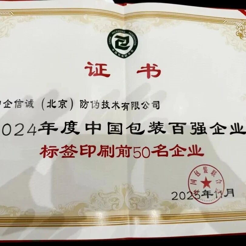 冬月传佳音,专业铸丰碑。11月30日至12月2日,由中国包装联合会主办的“2025标签(上海)论坛”在上海盛大举行。论坛期间,备受行业瞩目的“2024年度中国标签印刷前50名企业”榜单正式发布,中企信诚(北京)防伪技术有限公司(简称“中企防伪”)凭借其在防伪标签印刷领域深厚的技术积淀、创新的综合解决方案能力以及广泛的市场影响力,实力登榜。 这一殊荣,不仅标志着行业对中企防伪在标签印制技术与数字化服