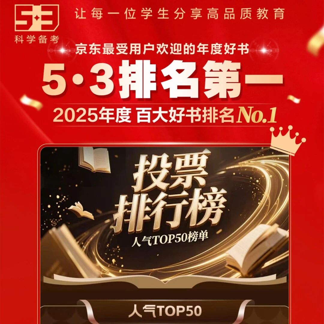 近日,在2025京东和光明网举办的“京东最受用户欢迎的年度好书”评选活动中,“5・3A 版图书”强势领跑《2025年度百大好书榜》,稳居全榜第一。 凭实力圈粉无数,用专业赋能成长。 来源:五三高考