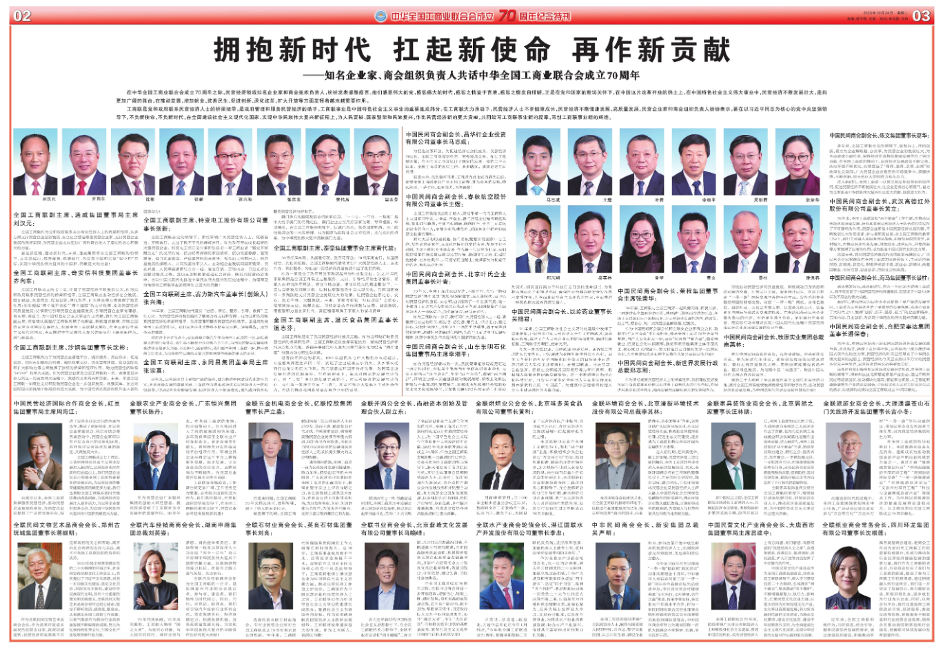 70年光辉岁月, 70年奋进征程。 70年栉风沐雨, 70年春华秋实。 70年岁序有情, 70年华章日新! 值此全国工商联成立70周年之际, 衷心祝贺全国工商联—— 旧岁有枝皆硕果, 新岁无树不繁花。