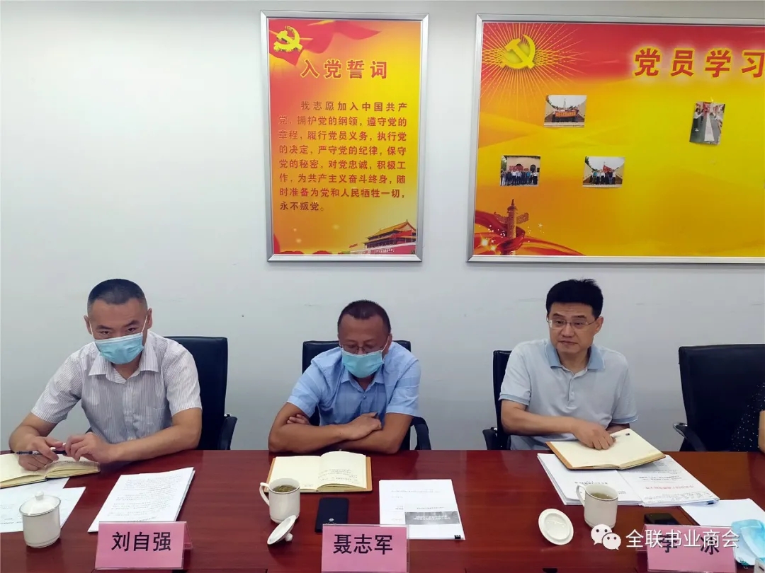 8月3日上午,全国工商联机关党委副书记、机关纪委书记李冰,经济部处长沙霖,宣教部处长聂志军,综合党委办公室赵云凤、刘自强莅临全联书业商会党员活动中心参加“走进商会促党建”活动。民办教育商会、美容化妆品