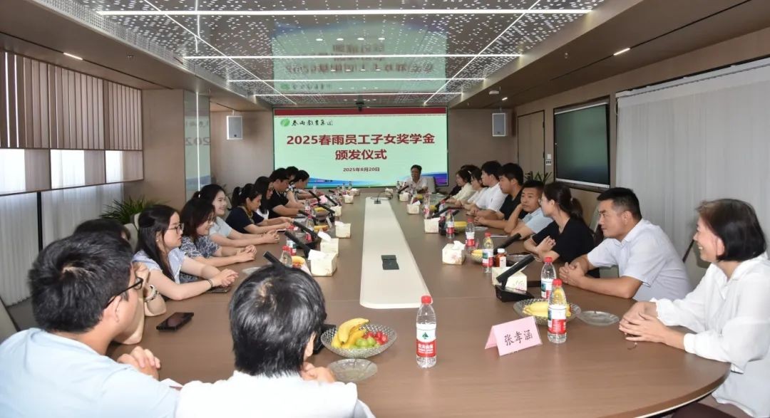 8月20日,春雨教育集团举行“2025年度春雨员工子女奖学金”颁奖仪式,14位员工子女受到褒奖,奖学金总额84000元。集团领导刘翀出席活动。颁奖仪式现场,在宁的获奖学子和他们的父母一起出席,气氛热烈而温馨;外地员工及子女则在线参加,同享光荣幸福时刻。人力资源部主任李淑敏暖心“点名”,向每一位到场或在线的员工子女表示祝贺;财务总监朱艳发布“2025春雨员工子女高考光荣榜”并宣读公司贺信,祝学子们云程万里、前程似锦。