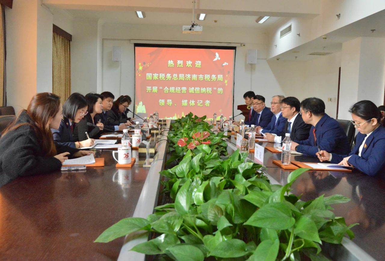 2月14日,国家税务总局济南市税务局“合规经营 诚信纳税”活动走进世纪金榜。国家税务总局济南市税务局纳税服务和宣传中心领导刘楠、槐荫区税务局办公室领导姜振昆、宋潇婷等税务部门同志以及新华社记者杨乐、齐