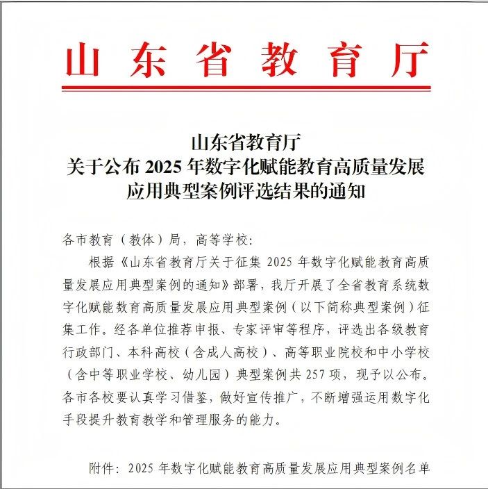 “朗云AI数字资源平台”的应用案例 《数字化赋能区县学前教育教学质量提升》成功入选山东省教育厅组织 “2025年数字化赋能教育高质量发展应用典型案例”名单!近日,山东省教育厅正式发布《关于公布2025年数字化赋能教育高质量发展应用典型案例评选结果的通知》,共评选出257项具有示范引领作用的典型案例。朗云AI数字资源平台的应用型研究荣列其中,这是对朗云AI数字资源平台在推动学前教育数字化、智能化转型
