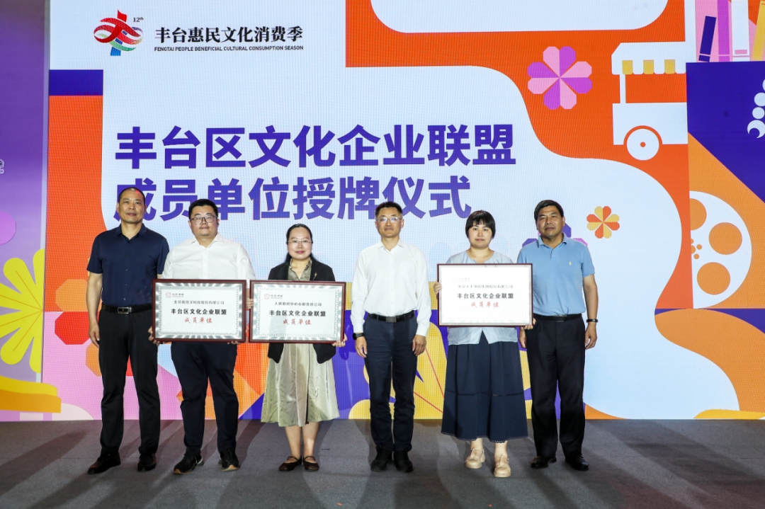 6月28日,丰台区文化企业联盟在第十二届丰台惠民文化消费季启动仪式上正式发布。人天书店集团正式成为丰台区文化企业联盟成员单位。 与会领导为丰台区文化企业联盟成员单位授牌人天书店集团成为丰台区文化企业联