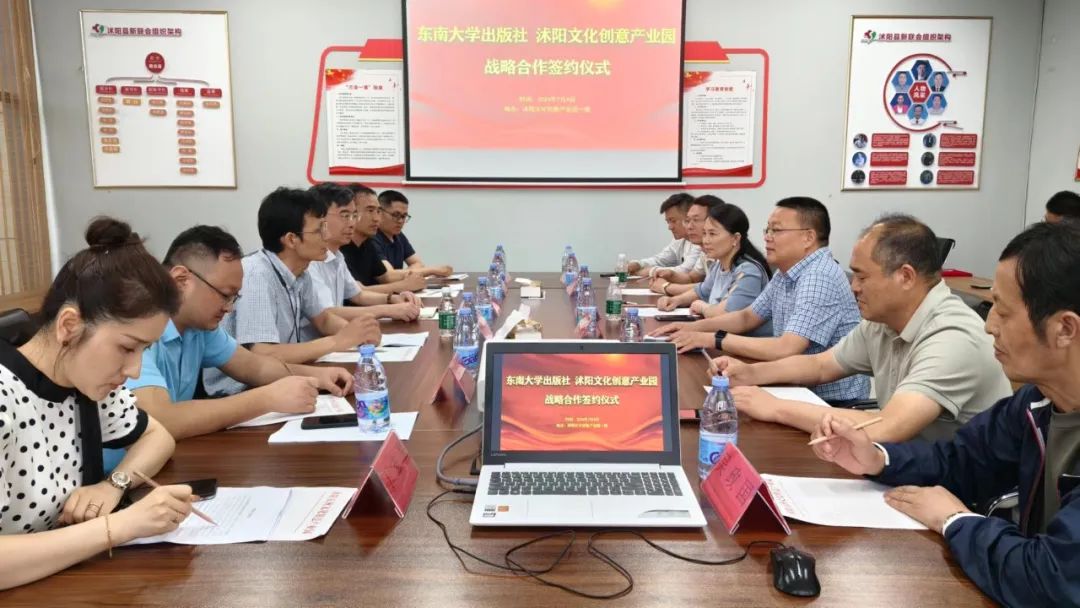 7月4日下午,东南大学出版社与沭阳文化创意产业园正式签署战略合作协议,为推动沭阳图书文化产业的创新发展迈出了坚实的一步。东南大学出版社党总支书记、社长白云飞教授,原总编辑张新建编审,出版项目负责人石迎