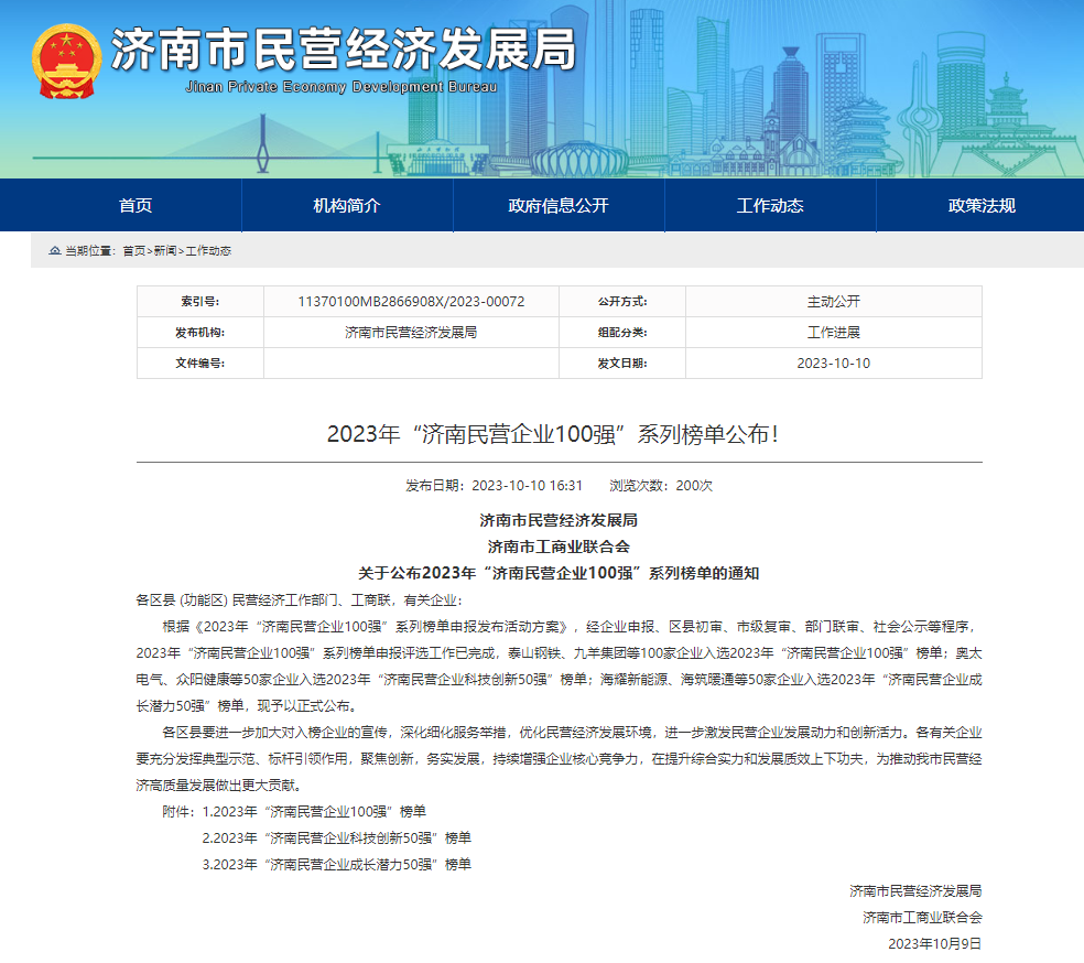 10月10日上午,济南市委市政府召开新闻发布会,公布了济南民营企业百强系列榜单。世纪金榜位于“济南市民营企业科技创新50强”前列,是文化教育出版行业中唯一一家获奖企业! 今年济南民营企业百强系列榜单新