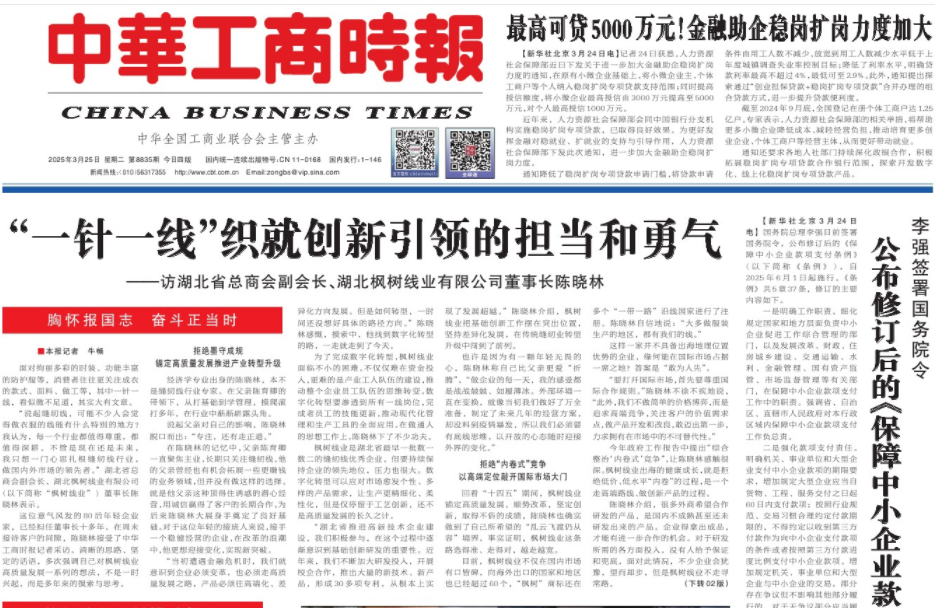 3月25日,《中华工商时报》在头版刊发文章《世纪金榜集团有限公司董事长张泉:在书业“长跑”中拥抱变革》,对世纪金榜进行了重点报道,讲述了世纪金榜不断进行创新实践,推出AI智教智学系统、探索适老化产品研
