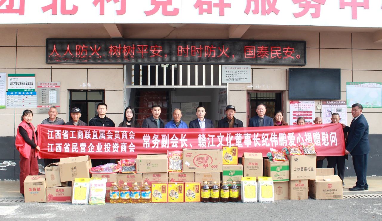2025年1月22日,新春来临之际,江西省工商联直属会员商会常务副会长、江西省赣江文化发展有限公司董事长纪伟鹏爱心捐物进行春节慰问活动,与江西省工商联直属会员商会党支部副书记兼执行秘书长胡显煋、副秘书