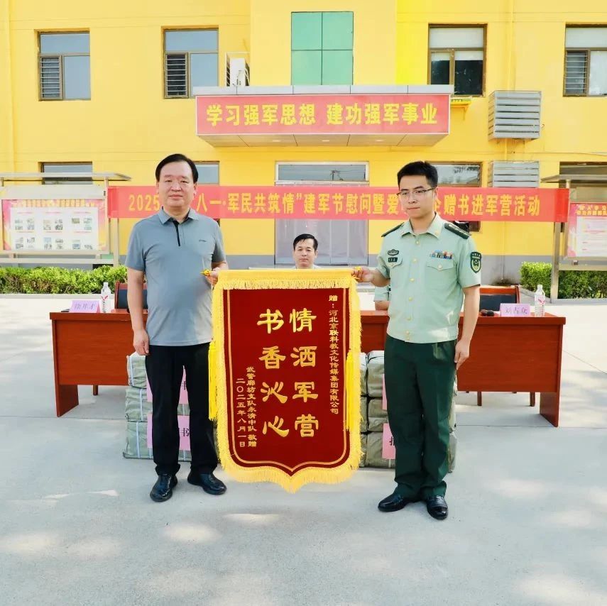 八一军旗红似火,军民鱼水情更深。八一建军节来临之际,为丰富军营文化生活,深化军民鱼水情谊,8月1日上午,由永清县文化广电和旅游局指导协调,河北京联科教文化传媒集团有限公司向永清县驻地武警官兵的八一建军节慰问暨爱心书企赠书进军营活动在永清县武警中队举行。永清县文化广电和旅游局党组书记、局长田光明,永清县文化广电和旅游局党组成员、文化执法大队大队长司绍祥,河北京联科教文化传媒集团有限公司董事长徐井才等