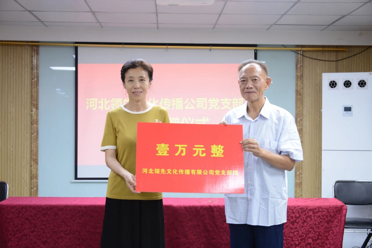 2024年8月30日,河北领先文化传播有限公司党支部响应国家乡村振兴战略号召,向石家庄市知行文明实践基金会捐赠现金10000元,专项用于支持河北省委宣传部在承德市围场满族蒙古族自治县查字上村开展的乡村