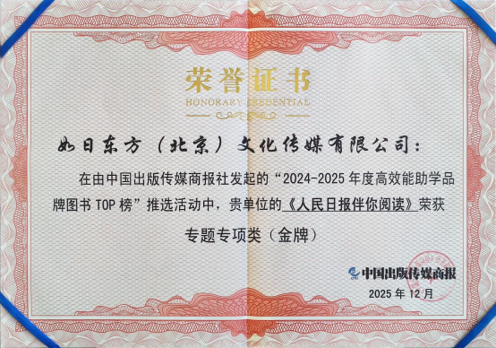 图:如日东方旗下品牌《人民日报伴你阅读》荣登“2024-2025年度高效能助学品牌图书TOP榜・专题专项类(金牌)”