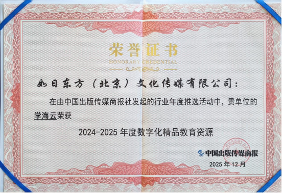 图:如日东方旗下教育云平台“学海云”荣获“2024-2025年度数字化精品教育资源”