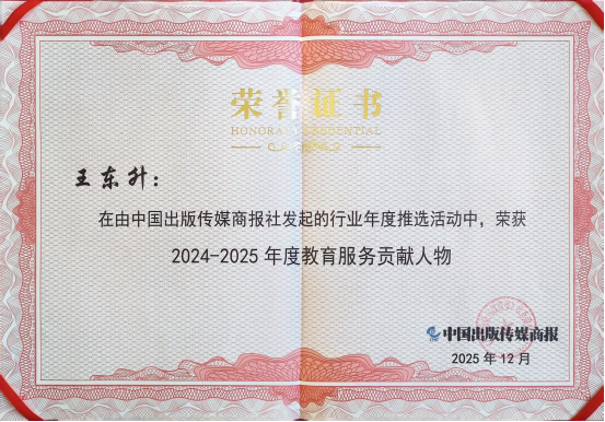 图:如日东方总经理王东升荣获“2024-2025年度教育服务贡献人物”