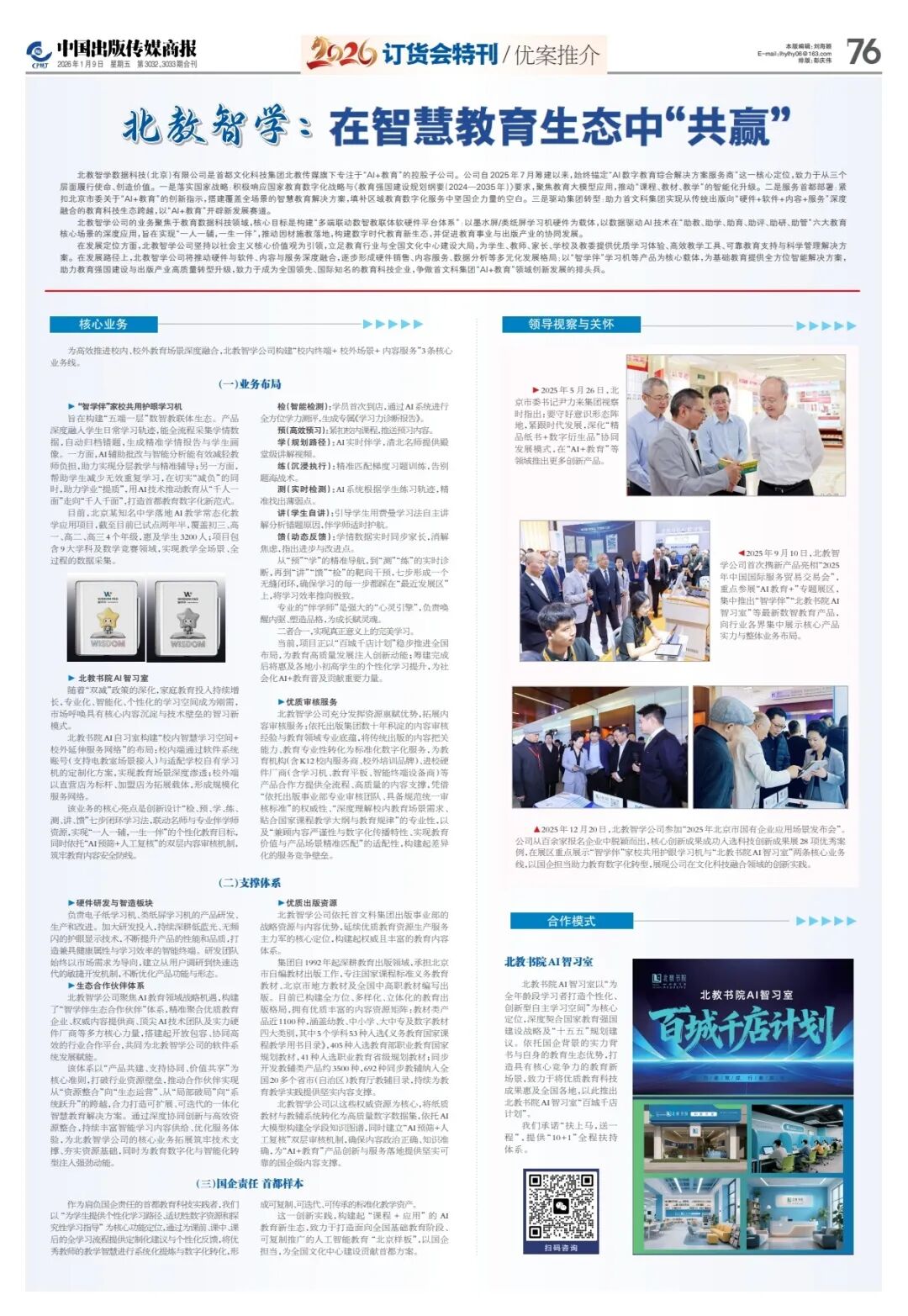 《北教智学:在智慧教育生态中“共赢”》发布于《中国出版传媒商报·成长教育周报》第3032、3033期合刊(2026年1月9日)。点击文末“阅读原文”可进入电子报页面。