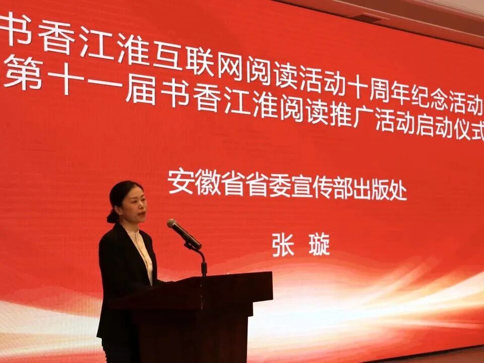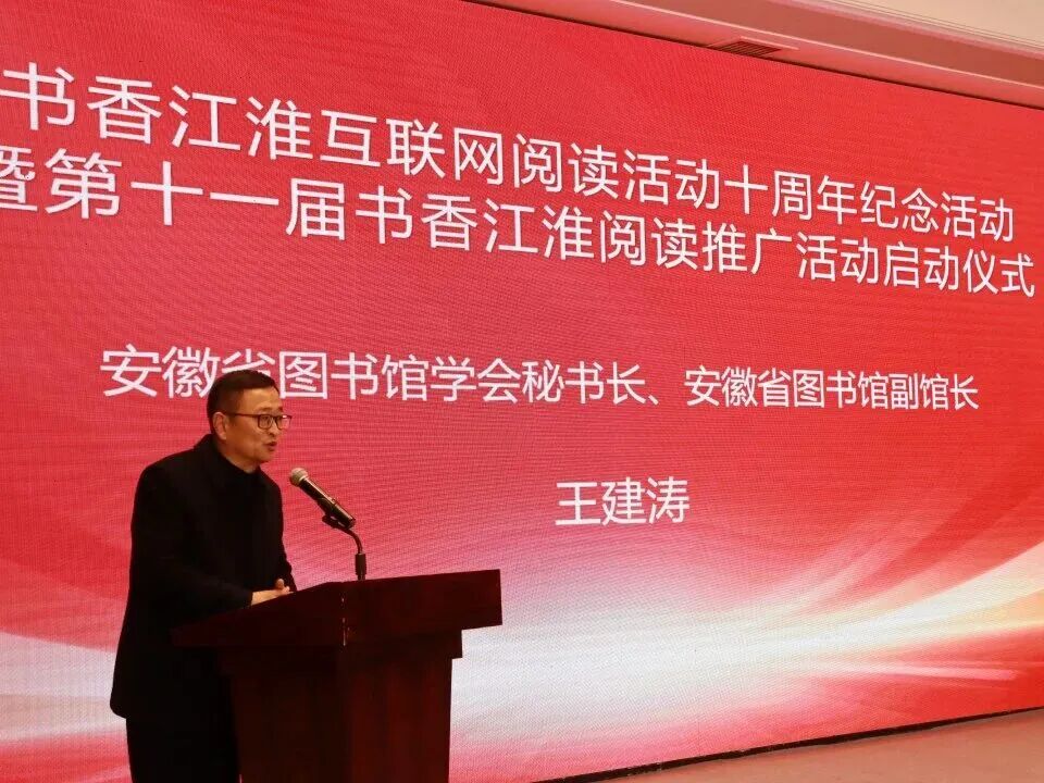 活动在合肥工业大学图书馆馆长孙祥、安徽师范大学图书馆副馆长刘和文、中文在线阅读公司常务副总经理李娜、中国科学技术大学图书馆副馆长郭磊的先后主持下拉开帷幕。宿州学院党委常委、宣传部部长岳尧,安徽省委宣传部出版处张璇,安徽省高等学校图书情报工作委员会秘书长储节旺,安徽省图书馆学会秘书长、安徽省图书馆副馆长王建涛研究馆员,安徽省出版协会全民阅读工作委员会秘书长蒋乃纯,以及中文在线阅读公司执行董事兼总经理杜嘉先后致辞,对“书香江淮”活动十年来取得的出色成绩表示热烈祝贺,并对未来发展寄予厚望。