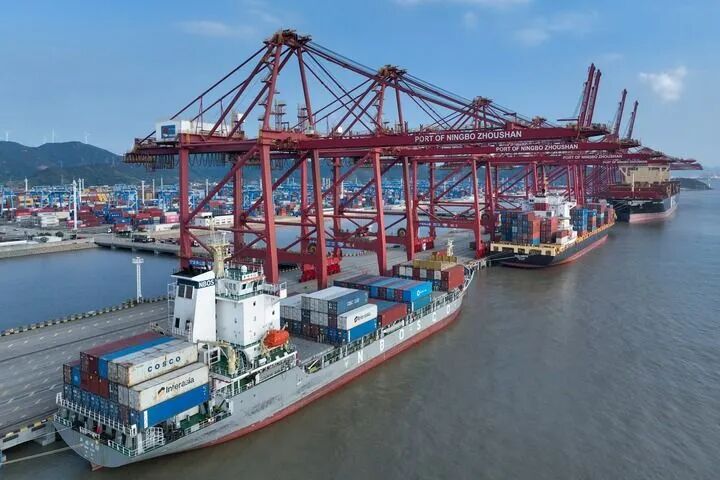 东海之滨,宁波舟山港,岸线上靠满万吨巨轮,桥吊装卸不停。截至9月11日,港口今年集装箱吞吐量突破3000万标准箱,较去年提前23天,再次刷新历史纪录。