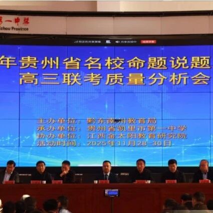 为深入贯彻落实立德树人根本任务,赋能教师专业成长,推动区域教育协同发展与质量整体提升,2025年11月29日至30日,由黔东南州教育局主办、凯里市第一中学承办、江西金太阳教育研究有限公司协办的“贵州省名校命题说题大赛暨高三联考质量分析会”在凯里一中成功举行。全省各市州学校领导老师、名校参赛老师、大赛评委专家及新疆、广西等兄弟省份学校领导老师共1300余名嘉宾,近130所单位齐聚一堂,共绘高中教育高